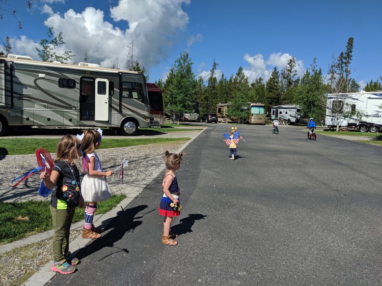 When reading through the itinerary, be aware that I chose RV parks and campgrounds that could accommodate our large group, and I booked most of the sites about five months in advance. We were undecided about the second week of our trip; half of the group wanted to explore northern Montana after our stay in West Yellowstone, and the rest of us wanted to start our homeward trek. About one month before the trip, the entire group decided to all travel the same way home, and I started scrambling to finish booking sites for the trip. By that time, every RV park and decent campground near Grand Teton National Park was totally booked, so we ended up boondocking in Wyoming on the Fourth of July in a wooded, secluded, beautiful spot that we never would have found otherwise. It was a happy accident that really made our time in Wyoming memorable, but I highly recommend booking campsites at least six months in advance so that you have a solid plan going into such a long trip. If you’re looking to camp within Yellowstone National Park or Grand Teton National Park, try to book 11-12 months ahead of time. (Next time, I am totally going to book campsites within the national parks. I already added reminders to my calendar so I can book those desirable sites a year in advance.)